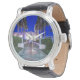 Uhr, Vintage Männeruhr mit schwarzem Lederarmband