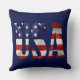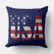 Der Text der USA und die Flag der USA, eingebettet in jedem Buchstaben. Patriotische Unabhängigkeit Tag 4. Juli Produkte, Geschenke und Souvenirs für jedermann. Dekokissen. Sie können das Bild und die Farbe des Hintergrunds ändern.