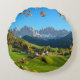 Val Di Funes-Tal mit rundem Kissen des Herbstlaubs