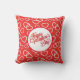 Dieses Kissen wird in Rot-Weiß-Farben mit einem niedlich festlichen Herzdruckdesign der Valentinen gezeigt. Passen Sie dieses Objekt an oder kaufen Sie einfach, wie es ist. Bild