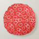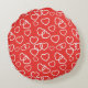 Dieses Rundkopfkissen ist in einem schönen, rot-weißen Valentinherzenprint zu sehen. Passen Sie dieses Objekt an oder kaufen Sie, wie es ist. Börsenbild vecteezy.com