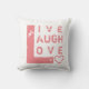 Ein modernes, aber schicke valentinisches Kissen mit Zitat-Sprichwort "live lagh Liebe". Sie können Ihre Fotos und Namen auf der Rückseite für ein personalisierteres Aussehen.