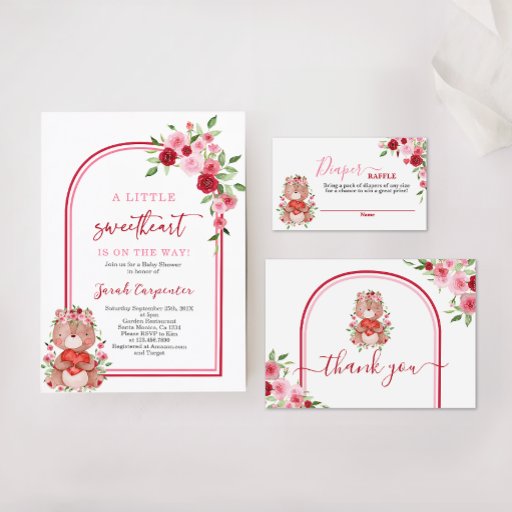 Valentines Baby Shower Bear Einladung für Baby Mädchen, ein kleines Sweetheart Rosa und rote Baby Dusche einladen, Editable Valentine's Baby Shower Einladung
