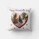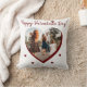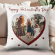 Burgundy Red Valentine`s Day Heart Family Foto Script Kissen. Die Rückseite hat rote Herzen auf einem weißen Hintergrund. Fügen Sie Ihr Foto und Text hinzu.