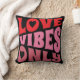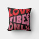 Valentines Liebe Vibes Typografie Rosa Kissen Schwarzer Kissen — "Liebe Vibes Only" in Rot- und Rosatönen, alle auf einem schwarzen Hintergrund. Hört in der Mitte des Buchstabens o. Einfache, mutige Typografie, die eine Aussage macht.