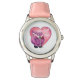 Kinderuhr aus Edelstahl mit rosa Lederarmband