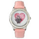 Kinderuhr aus Edelstahl mit rosa Lederarmband