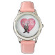 Kinderuhr aus Edelstahl mit rosa Lederarmband