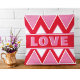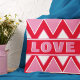 Fügen Sie Ihrem Zuhause mit diesem lebendigen rosa und roten Kissen einen kühlen Pop Liebe hinzu! Dieses gemütliche Akzent-Stück mit einem geometrischen Retro-Design und großen Blockbriefen, in denen "LIEBE" geschrieben wird, eignet sich perfekt für den Valentinstag, Jahrestage oder einfach nur aus dem Grund. Passen Sie den Text an, um ihn zu Ihrem eigenen zu machen - sei es Name, Datum oder eine Lieblingsphrase! Eine lustige und herzliche Ergänzung zu jedem Sofa, Bett oder Geschenkliste.