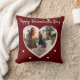 Burgundy Red Valentine`s Day Heart Family Foto Script Kissen. Die Rückseite ist mit weißen Herzen auf bordeauxrotem Hintergrund gestaltet. Fügen Sie Ihr Foto und Text hinzu.