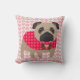 Ein Spaß und hübscher ein Tag des Valentines pillow Eigenschaften ein Weiß mit rosa Herzhintergrund und hübschen einem Mops, der einen Mantel der rosa Polkapunkte und der rosa Herz- und Braunenkarierten Bogen-Krawatte trägt.
