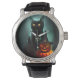 Vampire Cat and Wizard Pumpkin Halloween Surreal Armbanduhr