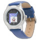 Kinderuhr aus Edelstahl mit blauem Lederarmband