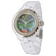 Eine wunderbare Damenuhr mit weißem Armband und grün-weiß-kariertem Ziffernblatt. Trägt sich ganz fabelhaft. Exzellenter Druck, sehr klare Farben. Schönes Design.