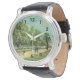 Uhr, Vintage Männeruhr mit schwarzem Lederarmband