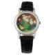 Uhr, Klassische Damenuhr mit schwarzen Lederarmband