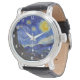 Uhr, Vintage Männeruhr mit schwarzem Lederarmband