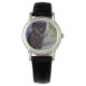 Uhr, Klassische Damenuhr mit schwarzen Lederarmband