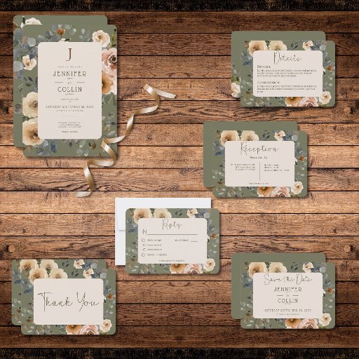 Vanilla White Boho Roses Sage Wedding SuiteDesignt von Kathe Santillo