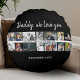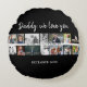 Vater mit Kindern und Vater Foto 14 Collage Round Kissen. Collage von 14 Fotos, väterlicher Name mit einer süßen Nachricht in einem trendigen Drehbuch und Kindernamen, die die Fotos überlagern. Fügen Sie Ihre 14 Lieblings-Fotos hinzu. Der süße Sake und ein Geschenk zum Geburtstag, zum Vatertag oder zu Weihnachten für einen Vater, einen neuen Vater oder Großvater.