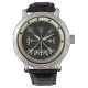 Uhr, Vintage Männeruhr mit schwarzem Lederarmband
