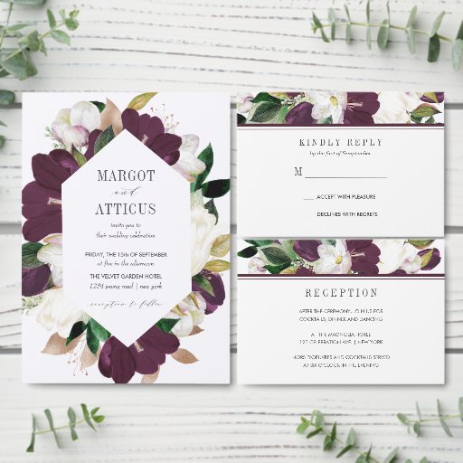 Velvet Magnolia und Elfenbeinküste Blume - Hochzei Einladung
