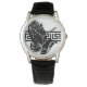 Uhr, Vintage Männeruhr mit schwarzem Lederarmband