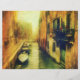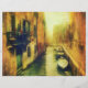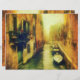 In der romantischen Herbstleuchte von Venedig, Italien, mit einem schönen italienischen Gemälde in erdigen Farbtönen rostig orange, goldgelb und olivgrün. An einem Venezianischen Balkon mit roten Blume, die noch in der Blüte sind, können Sie einen ruhigen Kanal mit verzierten Booten und alten Gebäude erkunden. ♡ Idyllfire