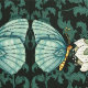 Diese Tapete zeigt eine aufwändige Holzschnitt-Pflanze einer Venus-Fliegenfalle und einen blauen Schmetterling, der seine Blume besucht. Inspiriert durch die Viktorianische Kunst- und Handwerksbewegung, hat dieses Design eine gotische Aura und lebhafte Farben.