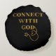Dieses runde Kissen hat ein Design, das einen Meteoritika-Print-Schriftart mit Bräunungsbuchstaben zeigt die Phrase "Mit Gott verbinden" mit einem Plus-Kabel mit Herz-und Plug-Ikone aus dem Wort Gott in diesem bibelbasierten Thema. Dieses Kissen ist aus hochwertigem Stoff gefertigt, unsere Kissen sind weich und faltenfrei, die Abdeckung ist maschinenwaschbar.