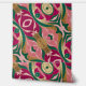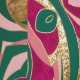 Inspired by peonies and garden blooms, this abstract artwork layers Verdigris and pink petals and leafy greens with gold metallic flourishes for an upscale, painterly vibe.