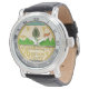 Uhr, Vintage Männeruhr mit schwarzem Lederarmband