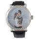 Uhr, Vintage Männeruhr mit schwarzem Lederarmband