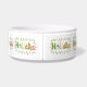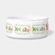 Lustige, verrückte Feiertagsschüssel für Hunde. Hübsches Geschenk für pelzige Freunde in dieser Saison. Farbdesign mit Stechpalme, Schneemann, Zuckerstange, Kerze, Pinienzapfen, Kardinal und Fellzweig umgeben von Weihnachtslichtern. Einfach den Namen des Hundes hinzufügen.