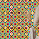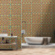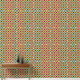 Diese schale und klebige Tapete zeichnet sich durch ein kompliziertes geometrisches Muster aus, das sofort das Auge erfasst. Das Design besteht aus miteinander verbundenen Diamantformen, die in fett schwarzen Linien umrissen sind. In jedem Diamanten befindet sich ein achtzackiges Sternenmotiv, das in Rosa und Weiß gefärbt ist. Diese Sterne erzeugen einen faszinierenden visuellen Rhythmus über die Oberfläche. Der Hintergrund ist eine auffällige orangefarbene Farbe, die der Komposition Wärme und Energie verleiht. An den Stellen, an denen sich die Diamanten verbinden, zeichnen kleinere blaue Quadrate das Design ab und erzeugen einen dynamischen Kontrast. Die Farbpalette umfasst Orange, Gelb, Blau, Rosa, Schwarz und Weiß, was zu einer lebendigen und modernen Ästhetik führt. Zusammenfassend lässt sich sagen, dass dieses Tapete fett gefärbte Farben, eine komplexe Geometrie und eine Touch der Verspieltheit vereint. Es ist perfekt, um in jedem Raum ein Statement-Stück hinzuzufügen!