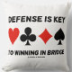 Zeigen Sie mit diesem Kopfkissen mit den vier Kartenkarten-Anzügen Ihre wry defensive Bridge Player-Haltung und das folgende Sprichwort der Bridge-Treue: "Defense Is Key To Winning In Bridge". Einprägbares Kissen für jeden Brückenspieler, der Lieben hat, eine Brückenhand zu verteidigen!