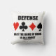 Zeigen Sie Ihre wry bridge / duplizierte Bridge-Einstellung mit diesem Werftkissen mit den vier Kartenkarten-Anzügen zusammen mit dem folgenden Bridge Truism Sprichwort: "Defense What The Game Of Bridge is All about".