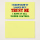 Das lautet: "Ich weiß, wie es aussieht, aber, glauben Sie mir, ich habe alles unter Kontrolle", in bunten Schriften und einem leicht zerbrechlichen Schriftart, der nahe legt, dass es alles sein könnte, ABER "alles unter Kontrolle".