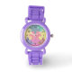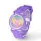 Uhr, Kinderuhr aus Edelstahluhr mit lila Lederarmband