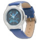 Kinderuhr aus Edelstahl mit blauem Lederarmband