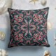 Die Verzierte Elegance im Aquamarinen Kissen von Charcoal kombiniert einen aquamarinen Hintergrund mit aufwändig mandala-inspirierten rosa Mustern. Ein perfekter Akzent für moderne, eklektische oder böhmische Innenräume.