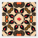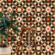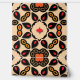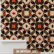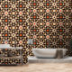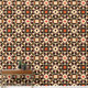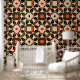 Diese schale und klebige Tapete weist ein symmetrisches und repetitives Muster auf. Geometrische und florale Motive verflechten sich und schaffen eine verzierte Komposition. Die Farbpalette umfasst die Farbtöne Schwarz, Beige, Rot, Orange und Gelb. Im Mittelpunkt des Musters steht eine achtblättrige, beige Blume-ähnliche Form, die schwarz umrissen ist. In der Umgebung befinden sich kleinere Dekorationselemente, die an Blätter und Blütenblätter erinnern. Diese Tapete mit Schale und Knüppel bietet eine kühn und aufwändig gestaltete Ästhetik für den Innenbereich. Die Klebkraft ermöglicht eine einfache Anwendung und Entfernung und ist somit eine ideale Wahl für diejenigen, die eine temporäre Umwandlung wünschen.