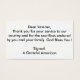 Ich nutze jede Gelegenheit, um unseren Veteranen zu danken, wann immer möglich. Meistens handelt es sich dabei um einen Handschlag und eine verbale Anerkennung ihrer Opfer. Ich habe auch Notizen geschrieben und auf Autos mit Lila Heart Aufklebern verlassen. Das Problem dabei ist, dass ich oft einen Stift verstaue oder mich ohne Papier finde. Diese Veteran Dankeschön-Karten können in der Handschuhdose oder in der Konsole für das nächste Mal, wenn Sie ein Auto oder LKW gehört einem Veteranen behalten werden. Es dauert nur einen Augenblick, einen für sie verlassen. Vielen Dank an einen Veteran JEDEN Tag !