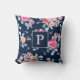 Vibrannendes rosa Roses Blumenmuster Monogram Kissen