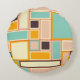 A vibrant abstract pattern with rectangles of varying sizes in teal, orange, peach, and cream tones, outlined in dark brown. Geometric and retro feel.