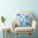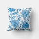 Square pillow with a white background featuring a vibrant blue floral pattern. Both front and back showcase the same intricate design.