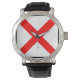 Uhr, Vintage Männeruhr mit schwarzem Lederarmband