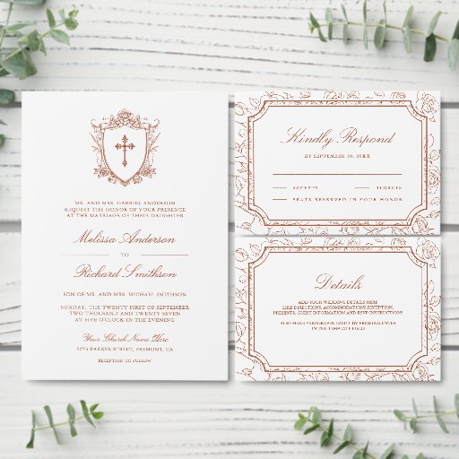 Victorian White and Terracotta Catholic Wedding Save The Date