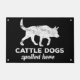 Vieh-Hunde verdarben hier, Bild und Text der entzückenden Vieh-Hunde-/HeelerSilhouette in beunruhigter Kreideart auf einem schwarzen Hintergrund.