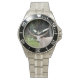 Diese Edelstahluhr ist mit einem weißen, langgezogenen Korn dekoriert